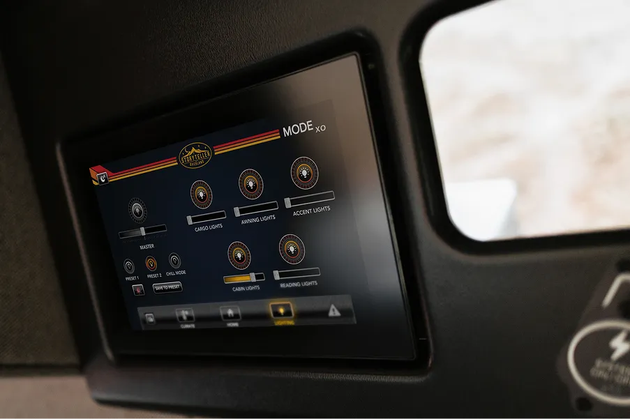 The Heart of the DARK MODE — 11" Touchscreen Control System provides a user-friendly interface to manage your power system, water system, climate controls and lights.
